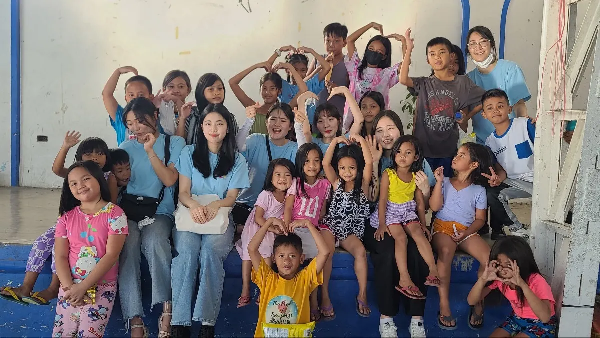 [색칠공부와 한글쓰기를 하는 필리핀 아이들과 차오름 단원]