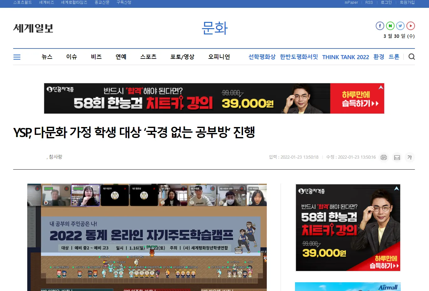 2020년, 2021년에 이어, 국경없는 공부방 프로그램이 2022년 행정안전부 공익활동 지원사업으로 선정되었습니다.