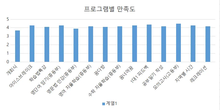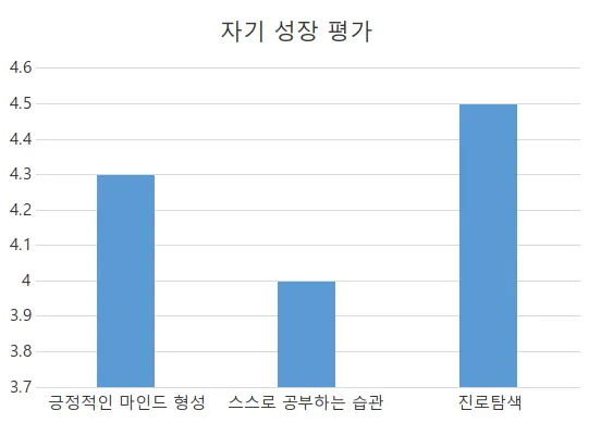 무엇을 위해 공부하는 이유가 생기게 되어서 앞으로 잘 할 거라는 자신감이 생겼습니다. 또한 학습캠프를 통해서 혼자 공부하는 느낌이 아니라 같이 함께 공부하는 느낌을 받았습니다. 다 같이 진로의 대해 고민해보고 성장해 나간다는 느낌을 받았습니다.