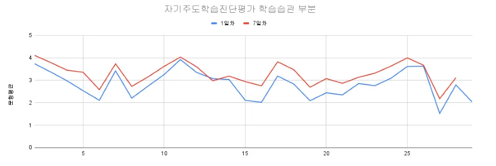 1일차: 2.83점 → 7일차: 3.35점 (0.52점↑)